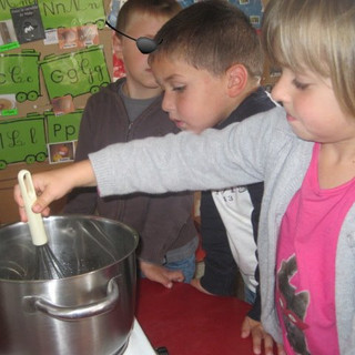 Ce jeudi 29 septembre après-midi, nous avons cuisiné avec madame Florence. Mais pas n'importe-quelle recette... des bonbons schtroumpfs!